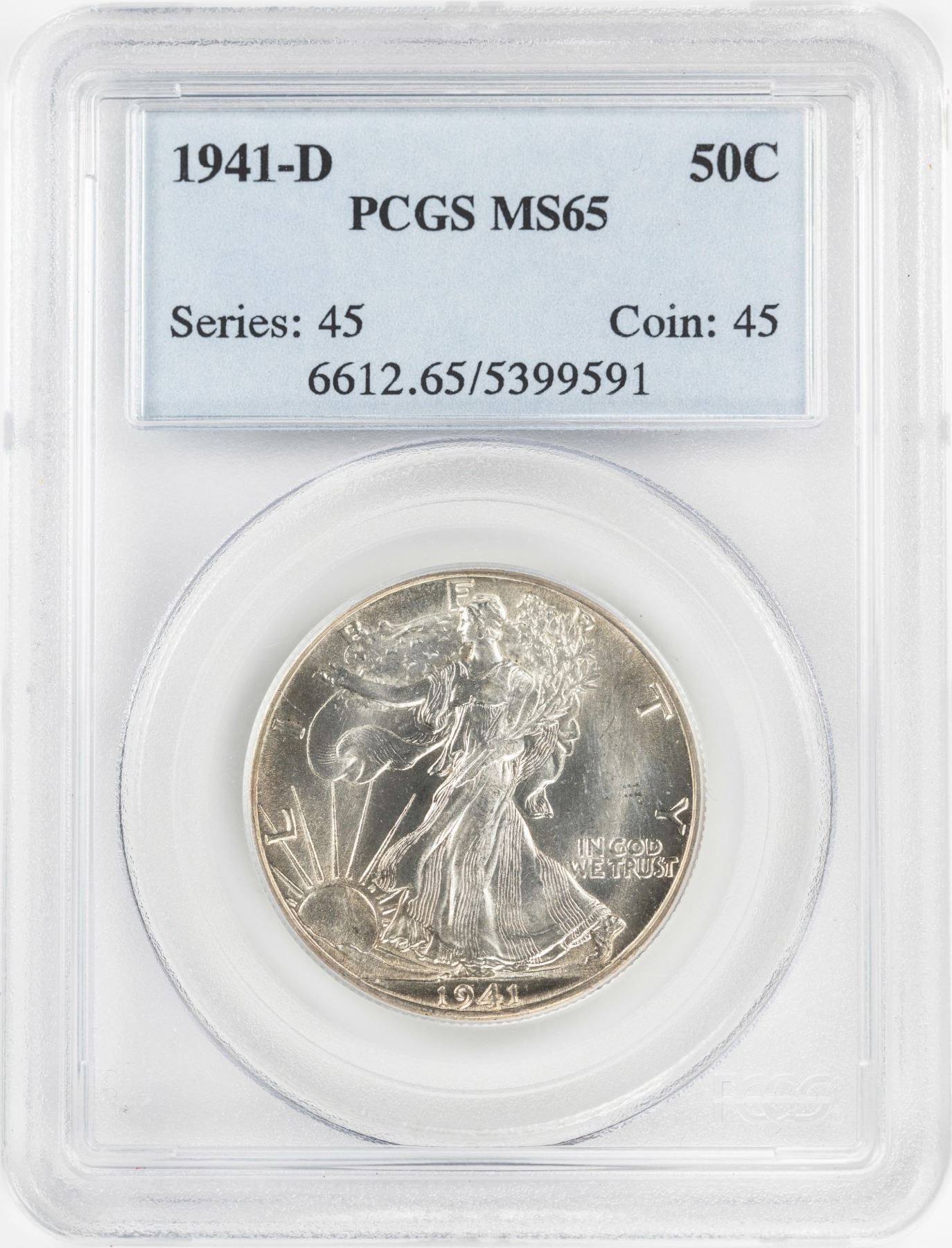 One 1941-D Walking Liberty Half Dollar Coin PCGS MS65.