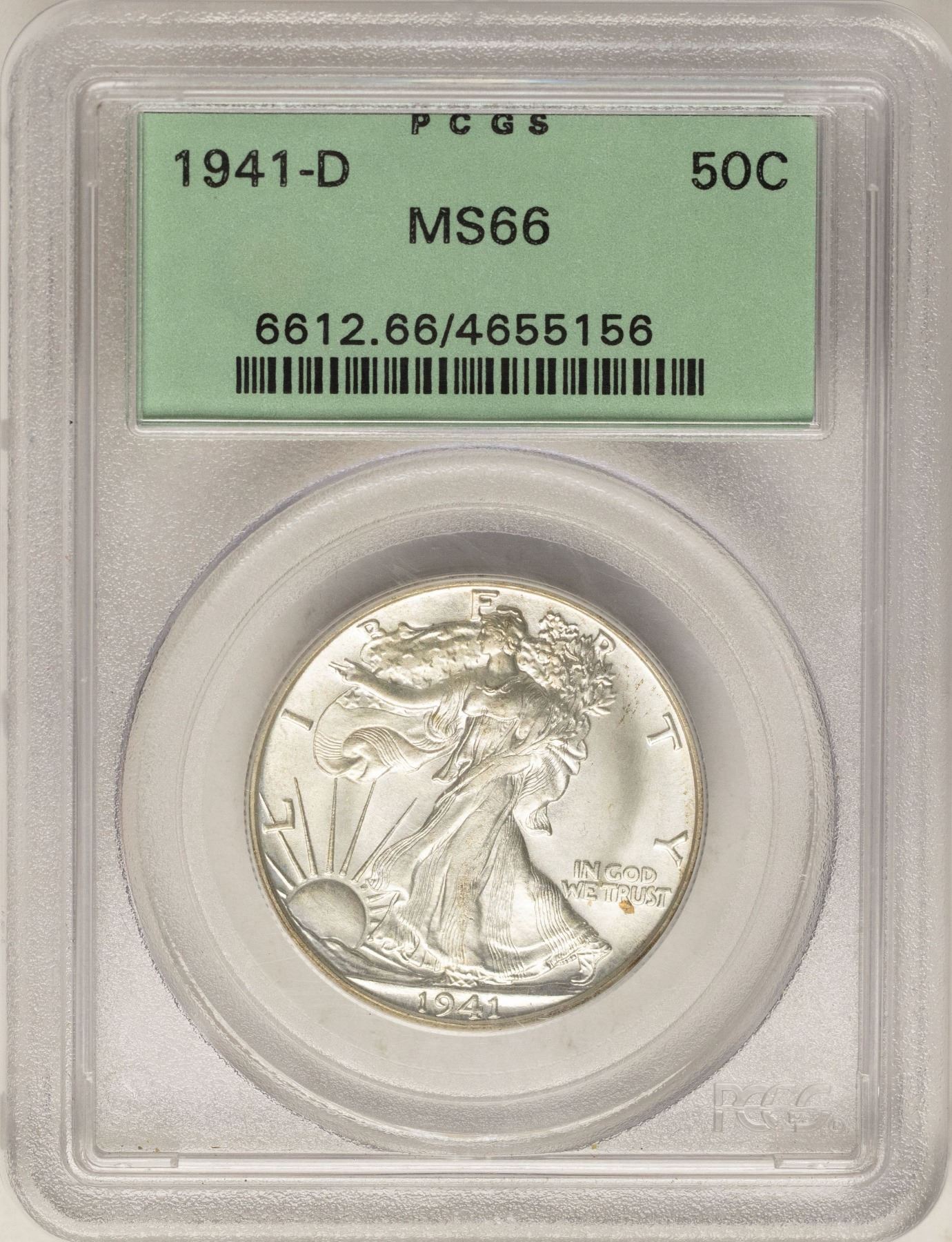 One 1941-D Walking Liberty Half Dollar Coin PCGS MS66 Old Green Holder.