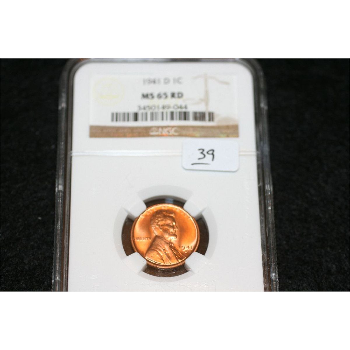 1941-D Wheat Back penny, NGC graded, MS65 RD