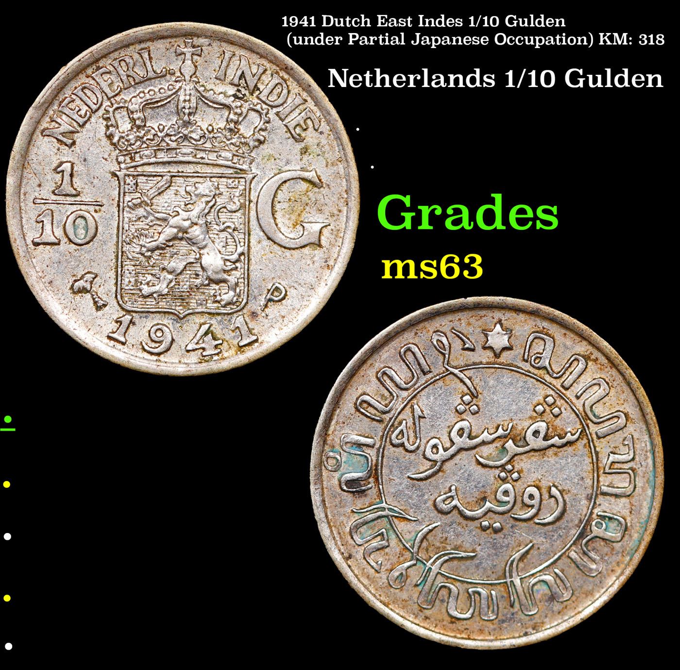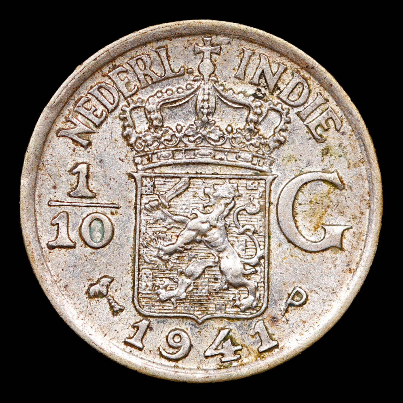 1941 Dutch East Indes 1/10 Gulden (under Partial Japanese Occupation) KM: 318 Grades Select Unc.