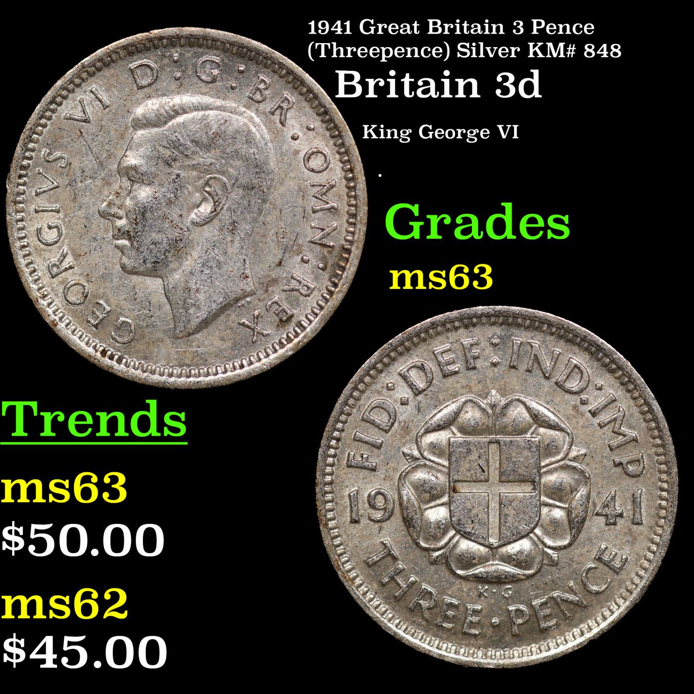 1941 Great Britain 3 Pence (Threepence) Silver KM# 848 Grades Select Unc.