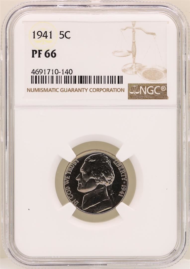 One 1941 Jefferson Nickel Proof Coin NGC PF66. NGC Certified.