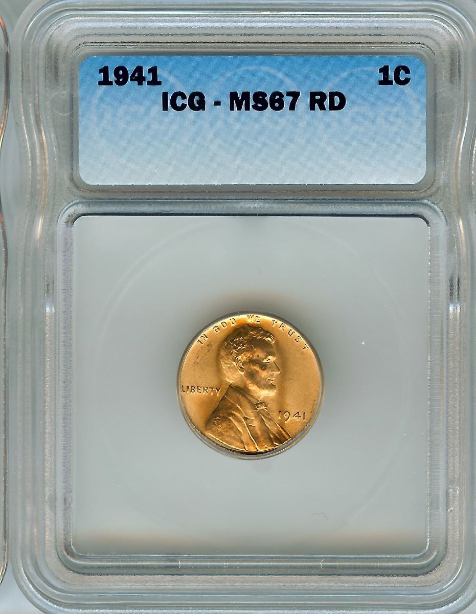 1941 LINCOLN WHEAT CENT ICG MS-67 RED SCARCE THIS NICE!