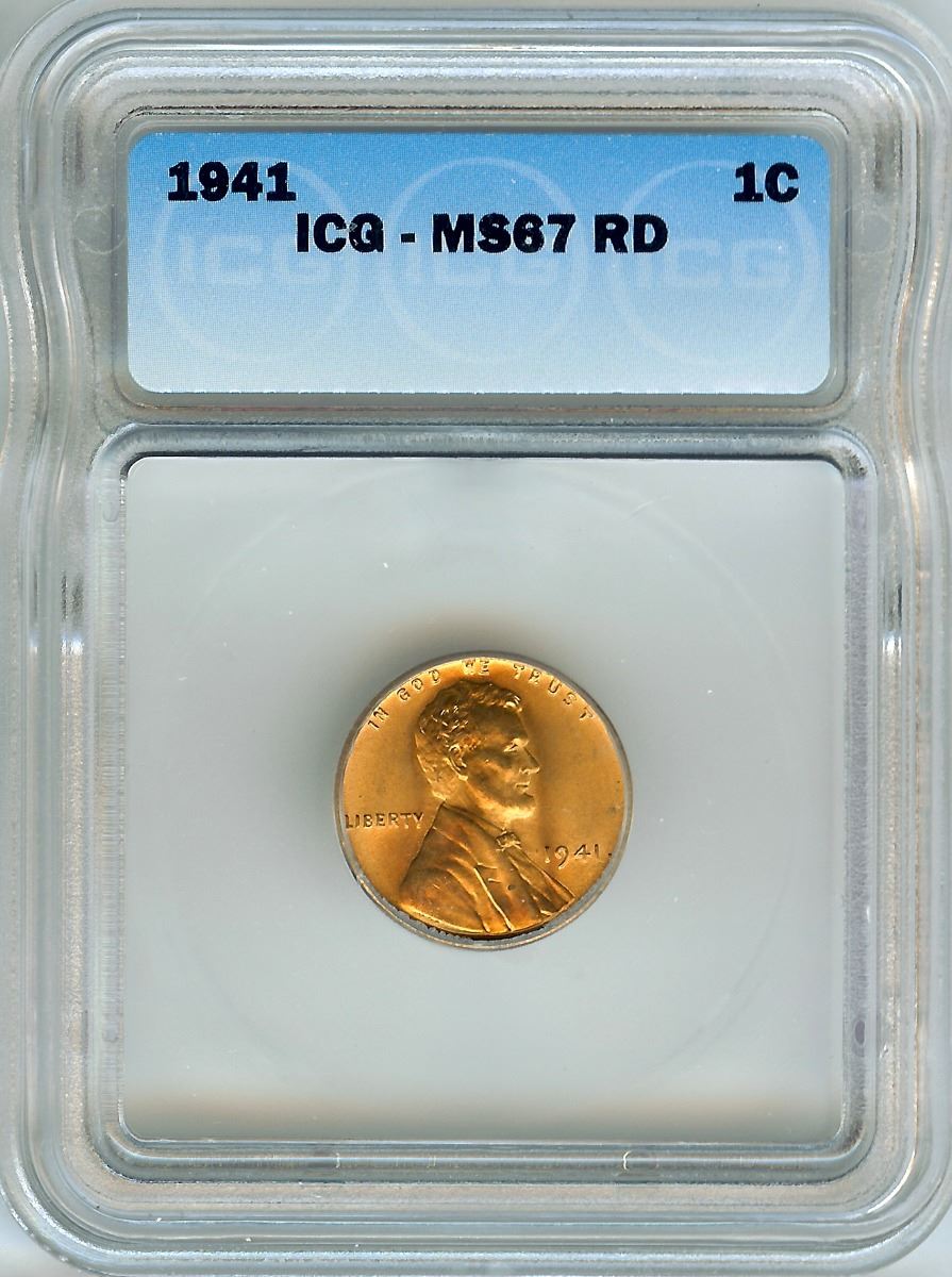 1941 LINCOLN WHEAT CENT ICG MS67 RED