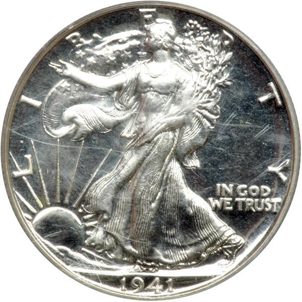 1941 Liberty Walking Half Dollar. PCGS graded Proof 64. A nice untoned example, gleaming with mirror finish. Strike is very bold (PCGS # 6641) .