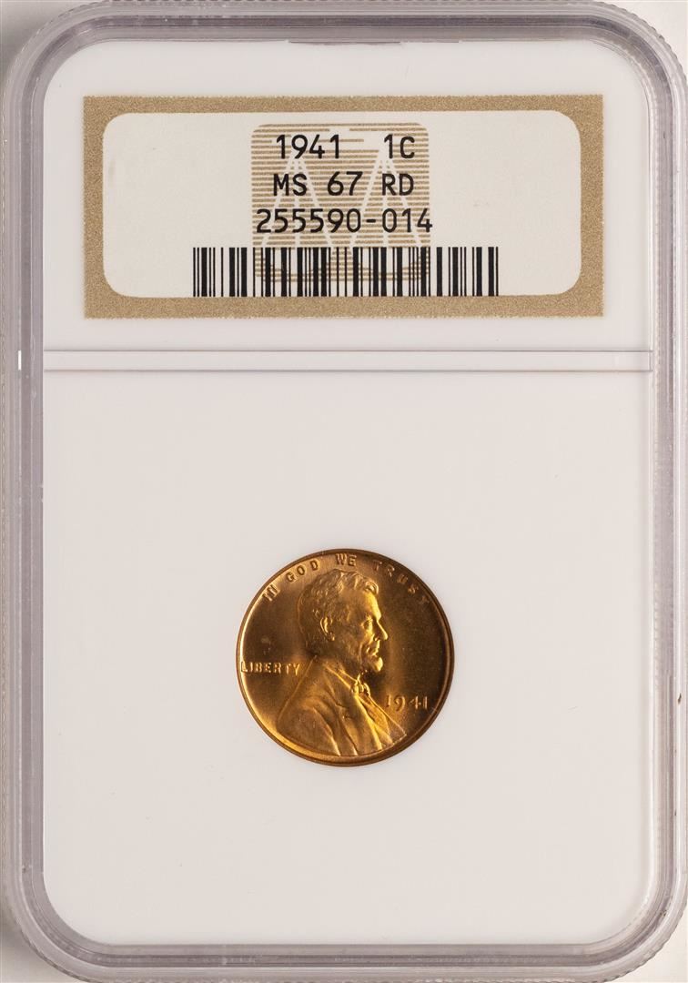 One 1941 Lincoln Wheat Cent Coin NGC MS67RD. NGC Certified.
