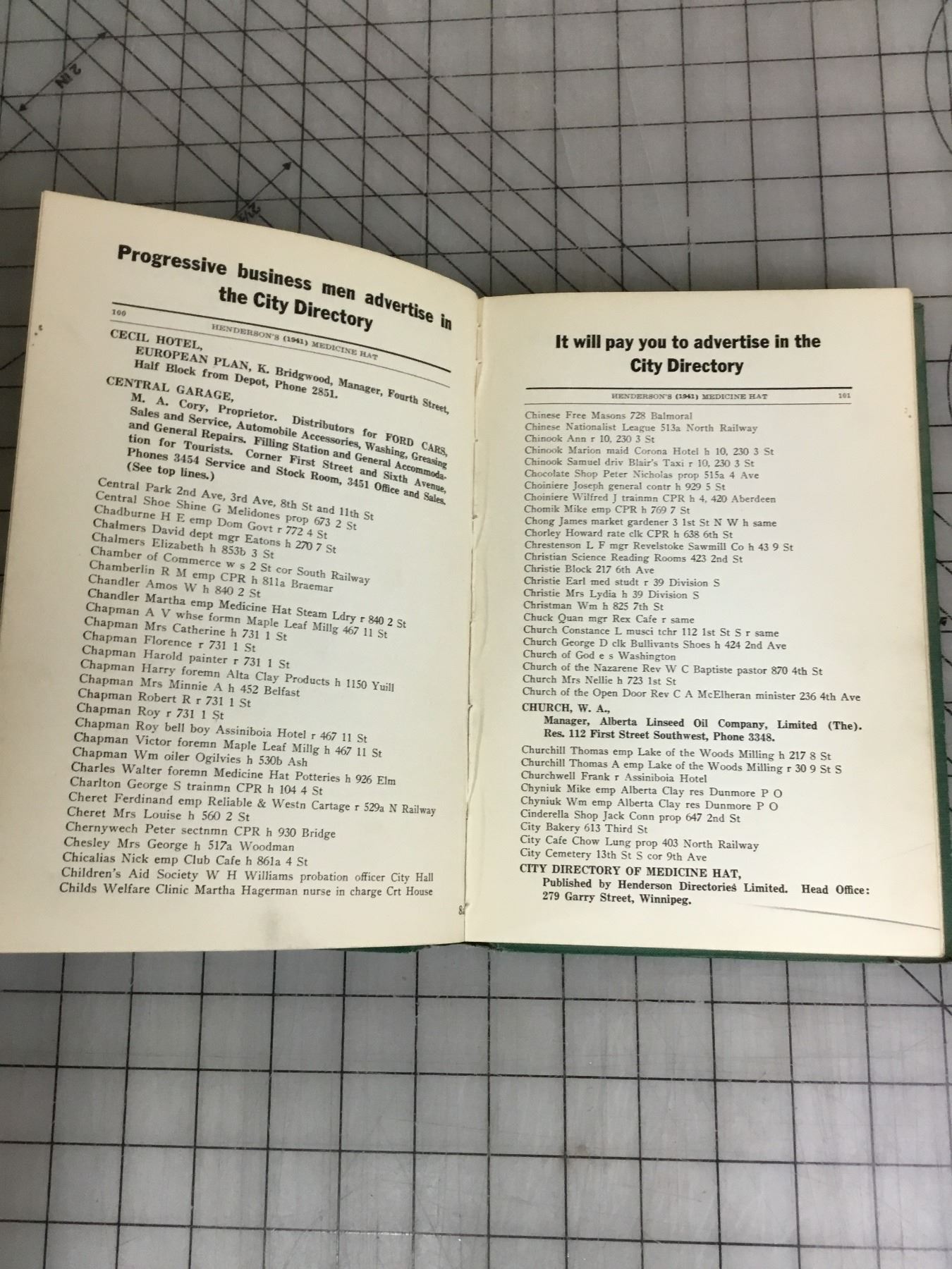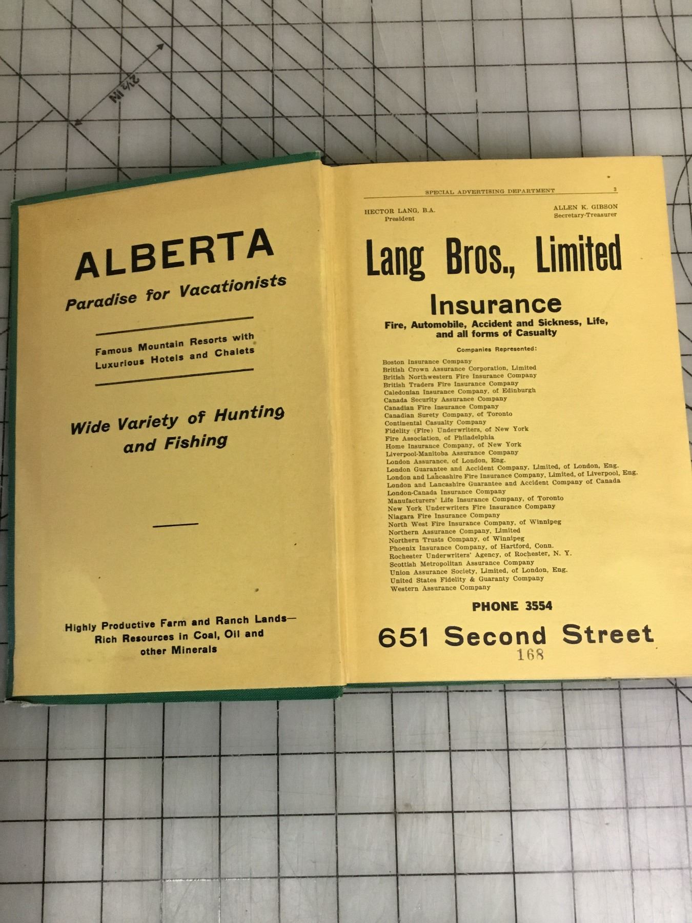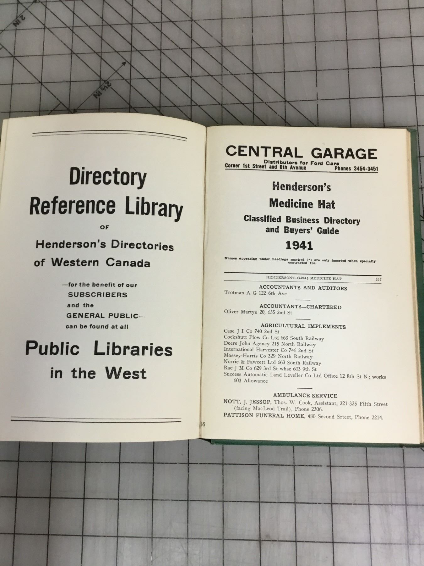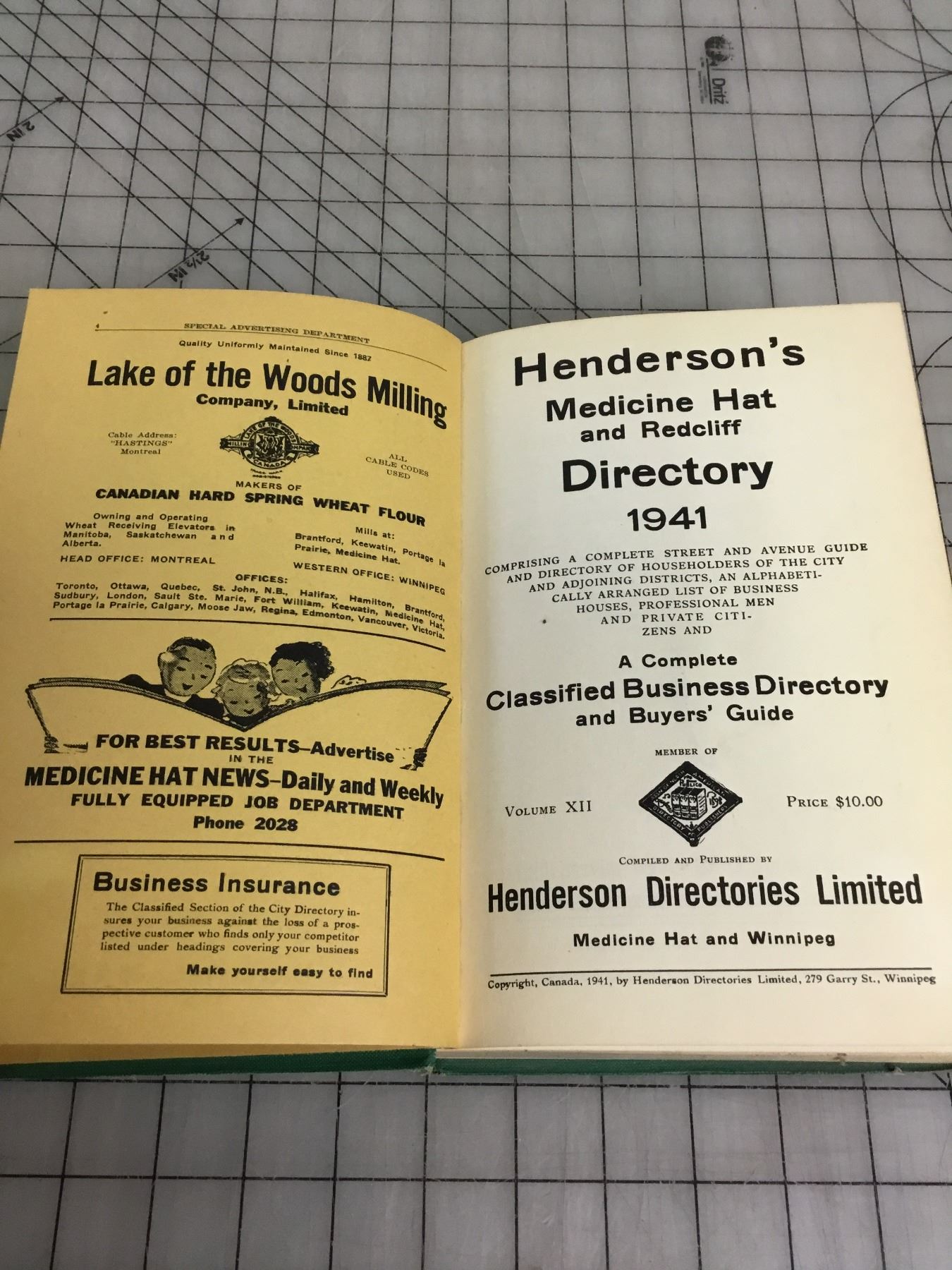 1941 MEDICINE HAT AND REDCLIFF DIRECTORY HARDCOVER BOOK