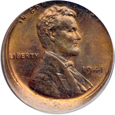 1941 MINT ERROR. Struck 5% Off Center. PCGS graded MS-65 Red & Brown.
