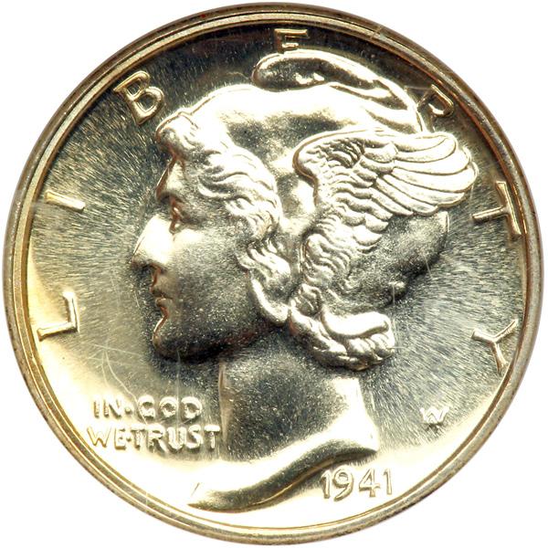 1941 Mercury Dime. NGC graded Proof 67. A creamy golden gem. Pop 354; 66 finer.