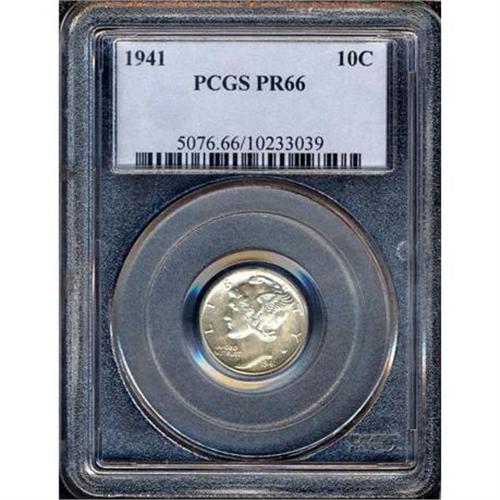 <b>1941 Mercury Dime. PCGS graded Proof 66.</b> Another sparkling high quality Gem that boasts swirling mirror effects and uncommonly sharp striking detail for the issue <b>(PCGS # 5076)</b> <i>