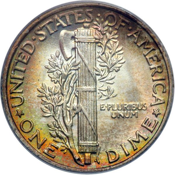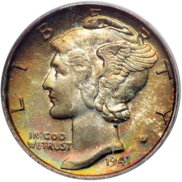 1941. PCGS graded MS-67 CAC Approved. Lovely rainbow toning. Pop 220; 6 in 68 (PCGS # 5028) .