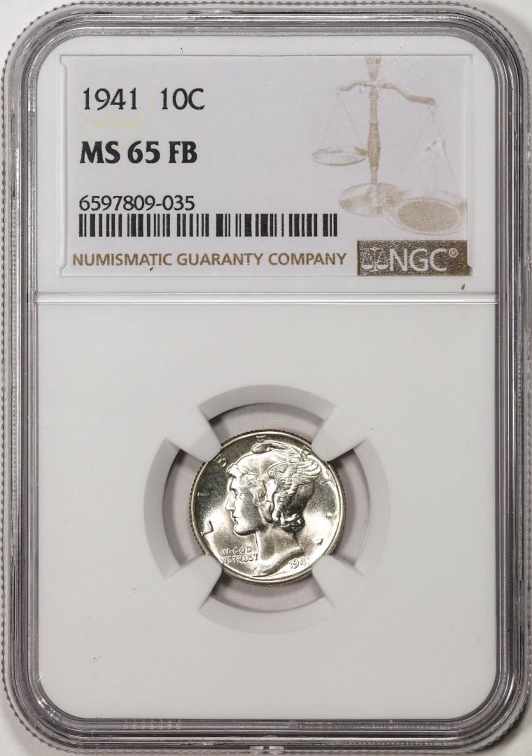 One 1941 Mercury Dime Coin NGC MS65FB. NGC Certified.