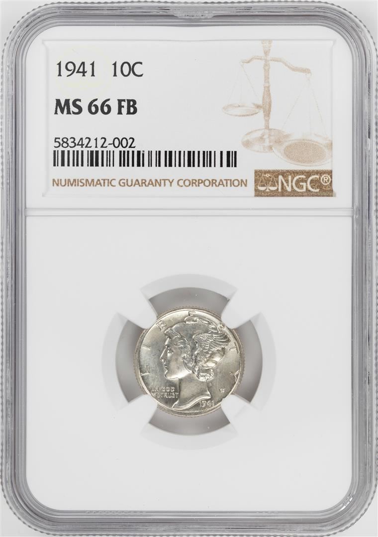 One 1941 Mercury Dime Coin NGC MS66FB. NGC Certified.
