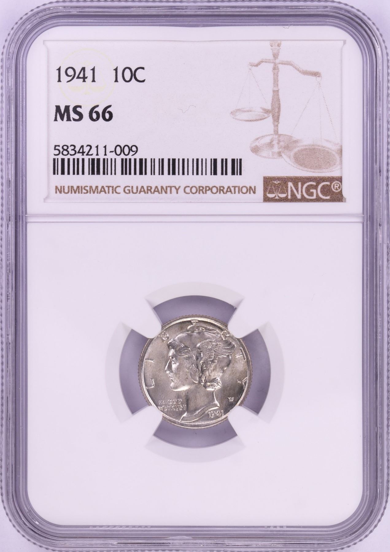 One 1941 Mercury Dime Coin NGC MS66.