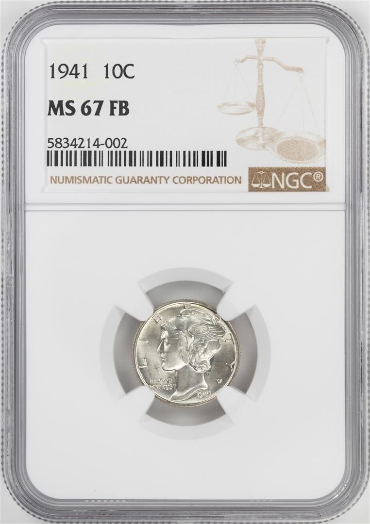 One 1941 Mercury Dime Coin NGC MS67FB. NGC Certified.
