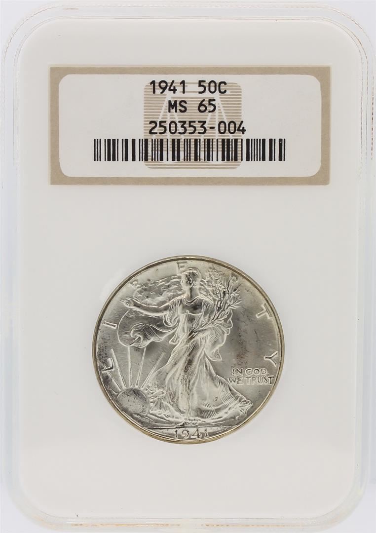 One 1941 NGC Graded MS65 Walking Liberty Half Dollar Silver Coin. NGC Certified.