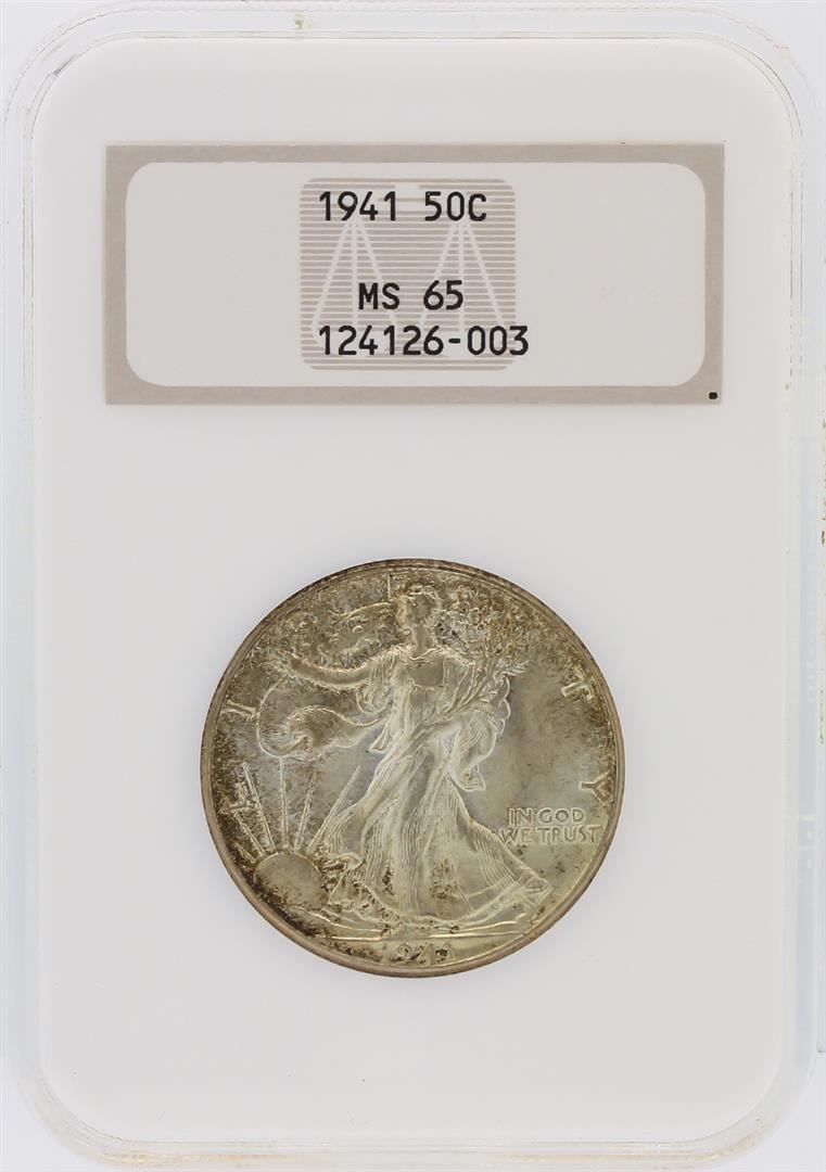 One 1941 NGC Graded MS65 Walking Liberty Half Dollar Silver Coin. NGC Certified.