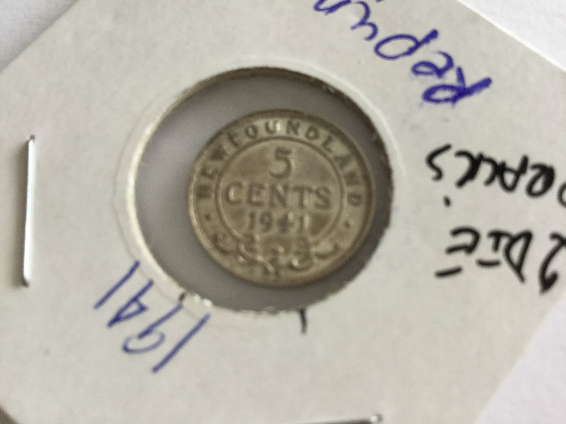 Canadian Newfoundland five cent High grade Silver error coin contains .925