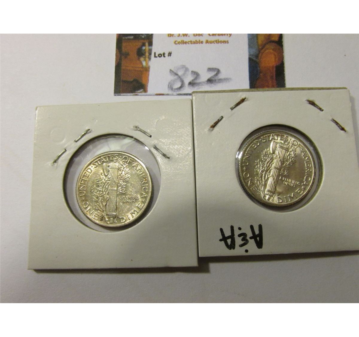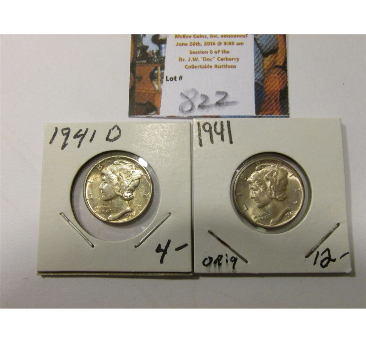 1941 P & D Mercury Dimes, AU to Uncirculated.