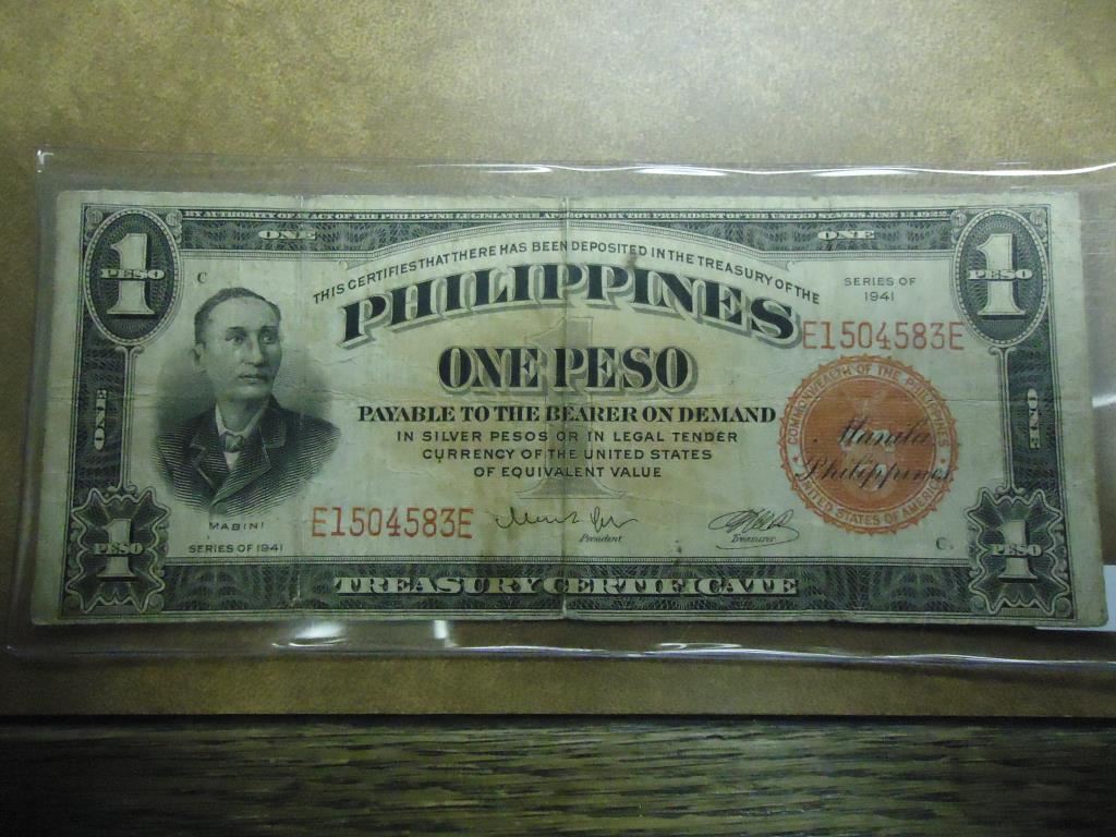 1941 PHILIPINNES 1 PESO CURRENCY