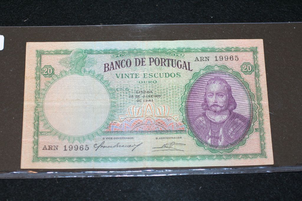 1941 Portugal 20 Vinte Escudos Foreign Bank Note