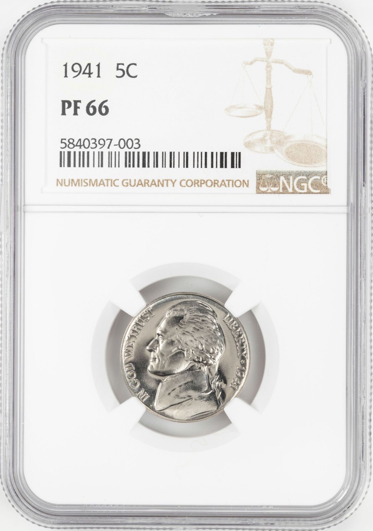 One 1941 Proof Jefferson Nickel Coin NGC PF66.