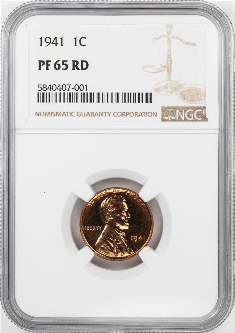 One 1941 Proof Lincoln Wheat Cent Coin NGC PF65RD. NGC Certified.