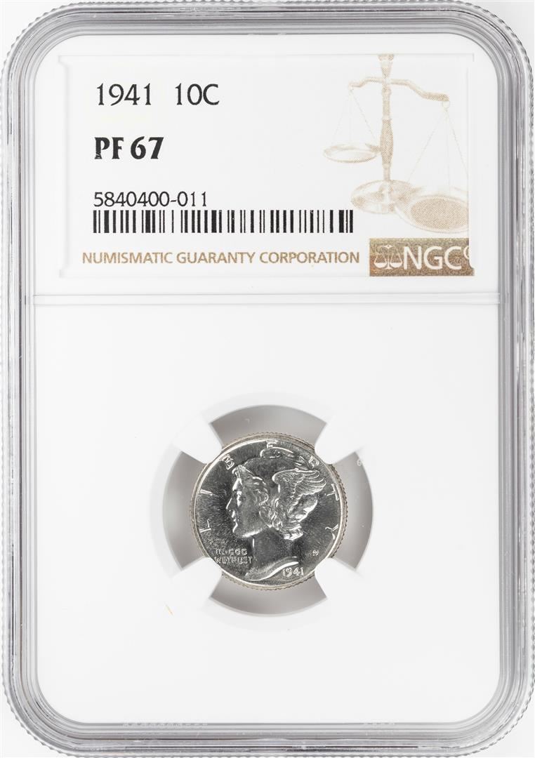 One 1941 Proof Mercury Dime Coin NGC PF67. NGC Certified.