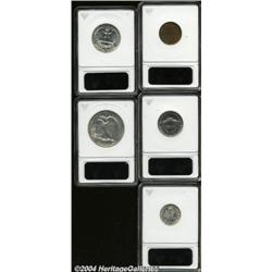 <table><tr><td><table><tr><td>1941 Proof Set PR63 to PR64 ANACS. The set includes: 1941 Cent PR63 Brown ANACS, luxuriously toned in aqua, rose-violet, and peach hues, the upper obverse has pinscratches; 1941 Nickel PR63 6 Steps ANACS, razor-sharp, sky-blue and gold color, a few obverse flyspecks; 1941 Dime PR64 Full Bands ANACS, light mauve patina, a beautiful near-Gem; 1941 Quarter PR63 ANACS, a speck of debris near the nose but otherwise splendid; and a 1941 Half Dollar PR63, Breen-5182, No AW monogram, an impressive and lightly toned specimen. 5 Coins <BR><BR><B>Important notice:</B> Heritage usually auctions material at the rate of 200-250 lots per hour. On some occasions eBay Live bid software or the Internet may not be able to keep up with the pace of the auction. We recommend placing a realistic absentee bid now as insurance to avoid disappointment. Occasionally the auctioneer may eliminate or reject an eBay Live bid, and the auctioneer may also reopen a lot after the close of the eBay live bidding (usually because we missed an audience bid), and may reject your bid even if it shows you as the winning bidder. By bidding via eBay Live, you agree that Heritage may award the lot to another bidder at its sole discretion under the circumstances described above or any other reasonable circumstances. Since eBay bids are not shown to us until we open the lot on the floor, we treat those bids just like floor bids. In most cases the floor responds before the eBay bid is presented to us, due to Internet lag time, so for consistency we have made it a policy that floor bids are always considered first over tie eBay live bids. Also please note that all Heritage lots purchased through eBay Live carry a 20% Buyer's Premium. Please make sure you read the Terms and Conditions before you bid. <BR><BR><B>IMPORTANT ANNOUNCEMENT ABOUT RESERVES:</B> Heritage now divulges all reserves on its web site 7 days before every auction. If you want to know whether the reserve on this lot has been met, and if not, what the reserve amount is, please visit this lot page on the HeritageCoin.com web site, or email: bid@HeritageGalleries.com </span></font></td></tr></table></td></tr></table>