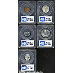 <B>1941 Proof Set PR63 to PR65 PCGS.</B></I> The set includes: <B>Cent PR63 Red,</B></I> deep copper-red coloration; <B>Nickel PR65,</B></I> faint milky toning around the borders; <B>Dime PR65,</B></I> dappled milky-gray obverse toning, and a splash of burnt-orange in the right obverse field; <B>Quarter PR64,</B></I> faint milky-gray toning; and a <B>Half Dollar PR63,</B></I> essentially brilliant, with speckled gold-orange toning in localized areas. 5 Coins <BR><BR><B>Important notice:</B> Heritage usually auctions material at the rate of 200-250 lots per hour. On some occasions eBay Live bid software or the Internet may not be able to keep up with the pace of the auction. We recommend placing a realistic absentee bid now as insurance to avoid disappointment. Occasionally the auctioneer may eliminate or reject an eBay Live bid, and the auctioneer may also reopen a lot after the close of the eBay live bidding (usually because we missed an audience bid), and may reject your bid even if it shows you as the winning bidder. By bidding via eBay Live, you agree that Heritage may award the lot to another bidder at its sole discretion under the circumstances described above or any other reasonable circumstances. Since eBay bids are not shown to us until we open the lot on the floor, we treat those bids just like floor bids. In most cases the floor responds before the eBay bid is presented to us, due to Internet lag time, so for consistency we have made it a policy that floor bids are always considered first over tie eBay live bids. Also please note that all Heritage lots purchased through eBay Live carry a 20% Buyer's Premium. Please make sure you read the Terms and Conditions before you bid. </span></font></tr></table></td></tr></table>