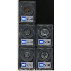<B>1941 Proof Set PR64 to PR66 PCGS.</B></I> The set includes: <B>Cent PR64 Red,</B></I> attractive if streaky peach and rose color; <B>Nickel PR66,</B></I> variegated apricot and lilac patina, well struck; <B>Dime PR65,</B></I> needle-sharp, faint russet color hugs the borders; <B>Quarter PR64,</B></I> a good strike, tobacco-brown peripheral patina; and a <B>Half Dollar PR64,</B></I> no AW monogram, brilliant, a couple of wispy hairlines in the right obverse field.<BR><I>From The Dennis Gundy Collection.</B></I> 5 Coins <BR><BR><B>Important notice:</B> Heritage usually auctions material at the rate of 200-250 lots per hour. On some occasions eBay Live bid software or the Internet may not be able to keep up with the pace of the auction. We recommend placing a realistic absentee bid now as insurance to avoid disappointment. Occasionally the auctioneer may eliminate or reject an eBay Live bid, and the auctioneer may also reopen a lot after the close of the eBay live bidding (usually because we missed an audience bid), and may reject your bid even if it shows you as the winning bidder. By bidding via eBay Live, you agree that Heritage may award the lot to another bidder at its sole discretion under the circumstances described above or any other reasonable circumstances. Since eBay bids are not shown to us until we open the lot on the floor, we treat those bids just like floor bids. In most cases the floor responds before the eBay bid is presented to us, due to Internet lag time, so for consistency we have made it a policy that floor bids are always considered first over tie eBay live bids. Also please note that all Heritage lots purchased through eBay Live carry a 20% Buyer's Premium. Please make sure you read the Terms and Conditions before you bid. </span></font></tr></table></td></tr></table>