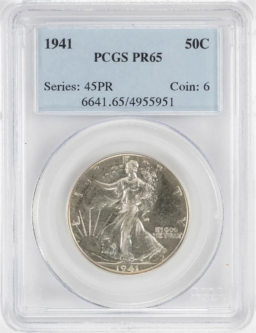 One 1941 Proof Walking Liberty Half Dollar Coin PCGS PR65. PCGS Graded.