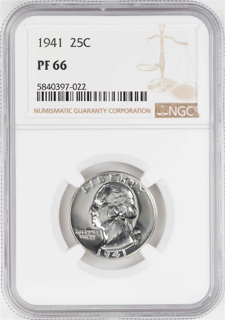 One 1941 Proof Washington Quarter Coin NGC PF66. NGC Certified.