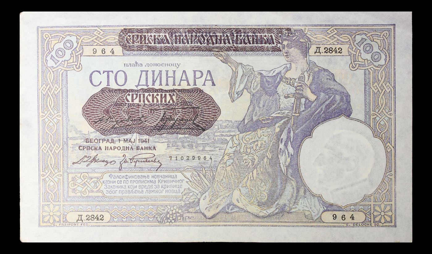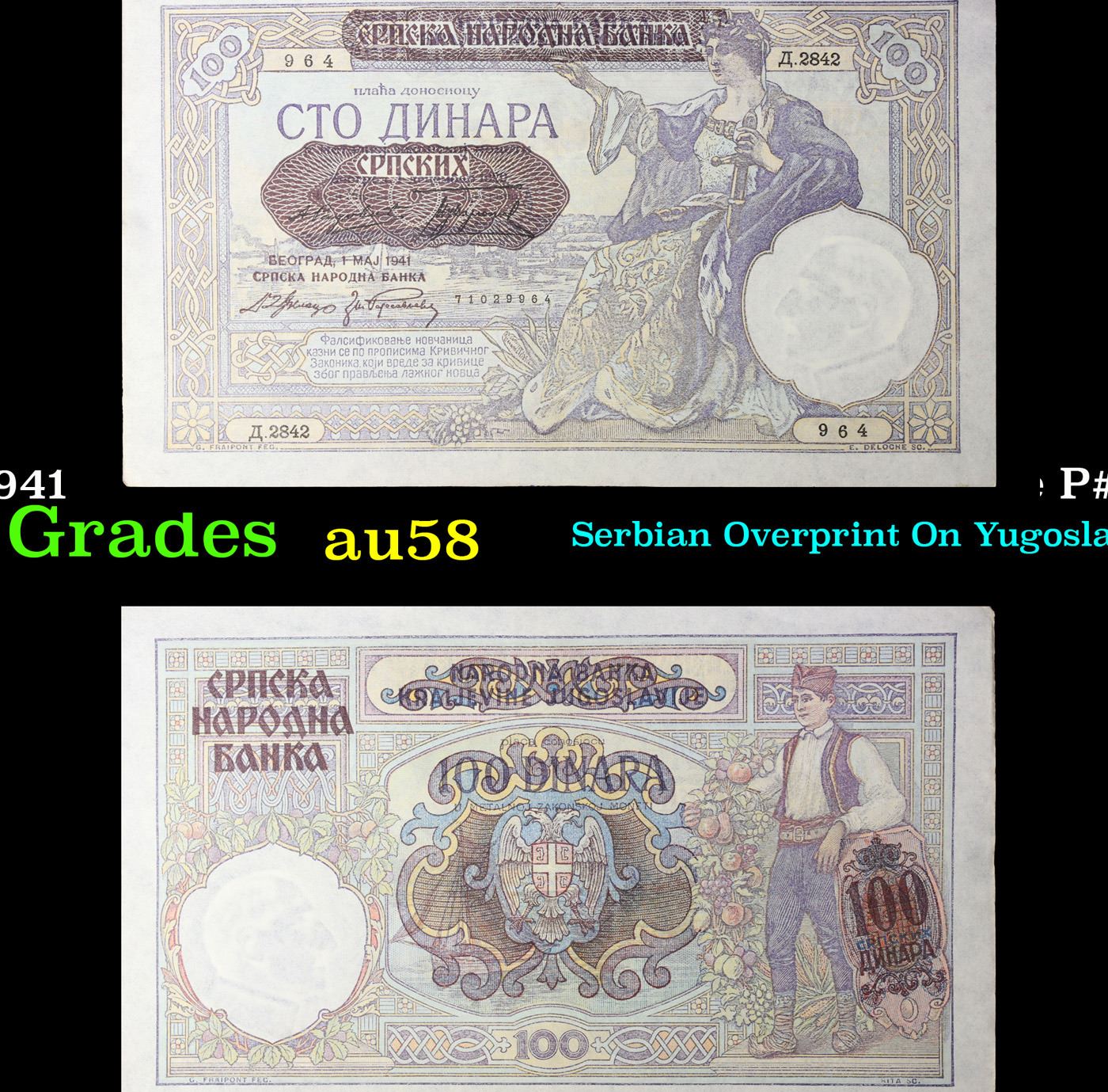 1941 Provisional Issue Serbia 100 Dinara Note P# 23 Grades Choice AU/BU Slider.