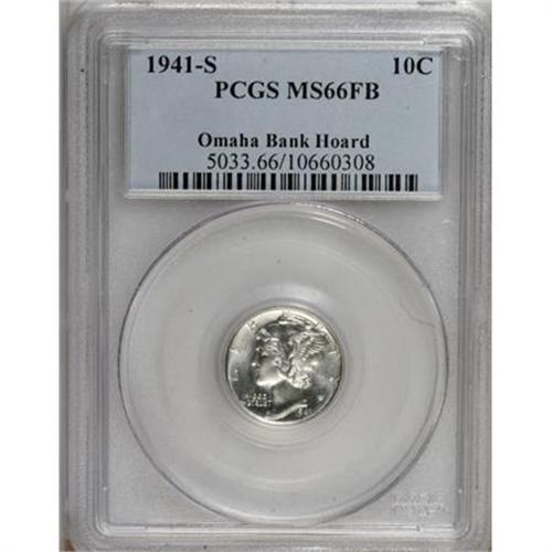 <B>1941-S 10C MS66 Full Bands PCGS.</B></I> Ex: Omaha Bank Hoard. PCGS Population (889/218). NGC Census: (725/350). Mintage: 43,090,000. Numismedia Wsl. Price for NGC/PCGS coin in MS66: $63. (#5033)<BR><BR><B>Coin Engraver:</B> Adolph A. Weinman<BR><BR><b>Shipping:</b> Coins & Currency (<a target="_blank" href="http://www.heritageauctions.com/common/shipping.php">view shipping information</a>)