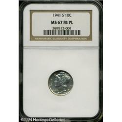 1941-S 10C MS67 Full Bands Prooflike NGC. Fully st <B>1941-S 10C MS67 Full Bands Prooflike NGC.</B></I> Fully struck, save for minor weakness on a few of the peripheral letters, with light toning near the borders, prooflike fields on obverse and reverse, and impeccably preserved surfaces. <BR><BR><B>Important notice:</B> Heritage usually auctions material at the rate of 200-250 lots per hour. On some occasions eBay Live bid software or the Internet may not be able to keep up with the pace of the auction. We recommend placing a realistic absentee bid now as insurance to avoid disappointment. Occasionally the auctioneer may eliminate or reject an eBay Live bid, and the auctioneer may also reopen a lot after the close of the eBay live bidding (usually because we missed an audience bid), and may reject your bid even if it shows you as the winning bidder. By bidding via eBay Live, you agree that Heritage may award the lot to another bidder at its sole discretion under the circumstances described above or any other reasonable circumstances. Since eBay bids are not shown to us until we open the lot on the floor, we treat those bids just like floor bids. In most cases the floor responds before the eBay bid is presented to us, due to Internet lag time, so for consistency we have made it a policy that floor bids are always considered first over tie eBay live bids. Also please note that all Heritage lots purchased through eBay Live carry a 20% Buyer's Premium. Please make sure you read the Terms and Conditions before you bid. This lot is being auctioned in conjunction with a live floor auction by Heritage Galleries & Auctioneers. All final auction and invoice information will be supplied by Heritage Galleries & Auctioneers, and all other information should be considered preliminary. Lot:5829