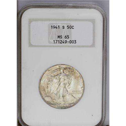1941-S 50C MS65 NGC. A lovely Gem quality example with 1941-S[50C] MS65 NGC.