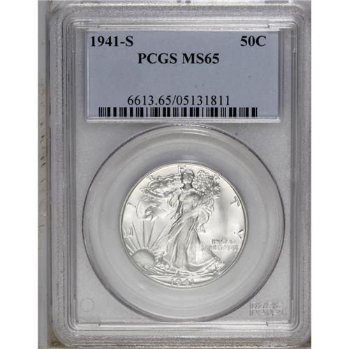 <B>1941-S<50C> MS65 PCGS.</B></I> A largely untoned Gem from the short set with pleasing luster and an above-average strike. Long, thin abrasions are noted in the right obverse field.