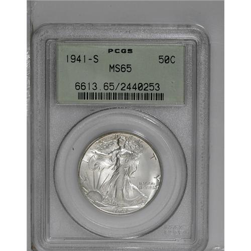 <B>1941-S<50C> MS65 PCGS.</B></I> A satiny and essentially untoned Gem with a typical strike for this issue. The remarkably mark-free fields and devices are worthy of the grade.