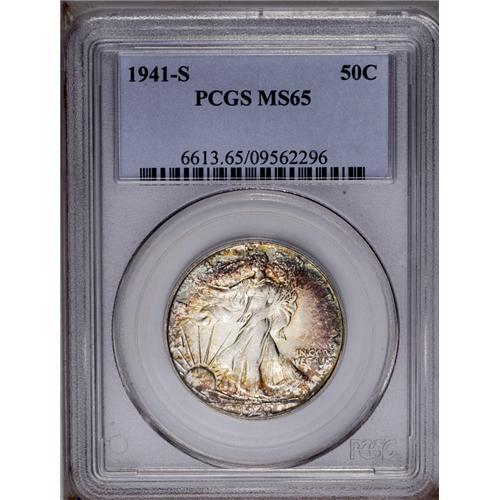 1941-S 50C MS65 PCGS. Fully lustrous surfaces reveal c 1941-S[50C] MS65 PCGS.