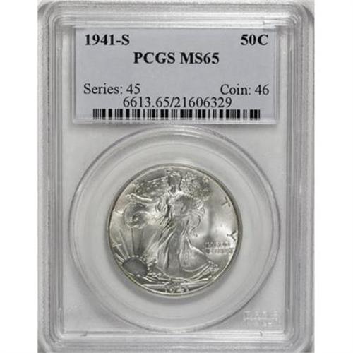 <B>1941-S 50C MS65 PCGS.</B></I> A lovely Gem example of this short-set S-mint issue, frosty with a pillowy strike. The carefully preserved surfaces display a delicate veil of lemon-gold patina over both sides.<BR><I>From The Mario Eller Collection, Part One.</B></I><BR><BR><B>Coin Engraver:</B> Adolph A. Weinman<BR><BR><b>Shipping:</b> Coins & Currency (<a target="_blank" href="http://www.heritageauctions.com/common/shipping.php">view shipping information</a>)