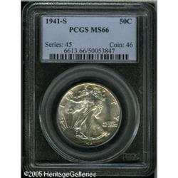 <B>1941-S 50C MS66 PCGS.</B></I> Shimmering luster with a virtually untoned appearance. Well struck with most of the central details complete. An important coin for the advanced collector and almost impossible in finer grades. Lot:8109