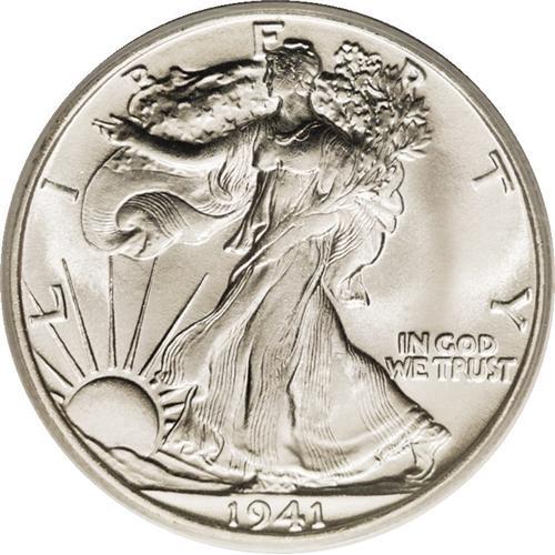<B>1941-S 50C MS66 PCGS.</B></I> Virtually brilliant, although a whisper of tan emerges here and there. Booming luster illuminates this nearly pristine Premium Gem. The cheek and branch hand are slightly soft, but the strike is certainly above average for a San Francisco Walking Liberty from the 1940s. As of (10/06), PCGS has certified a mere six pieces finer.<BR><BR><b>Shipping:</b> Coin/Currency (<a target="_blank" href="http://www.heritageauctions.com/common/shipping.php">view shipping information</a>)