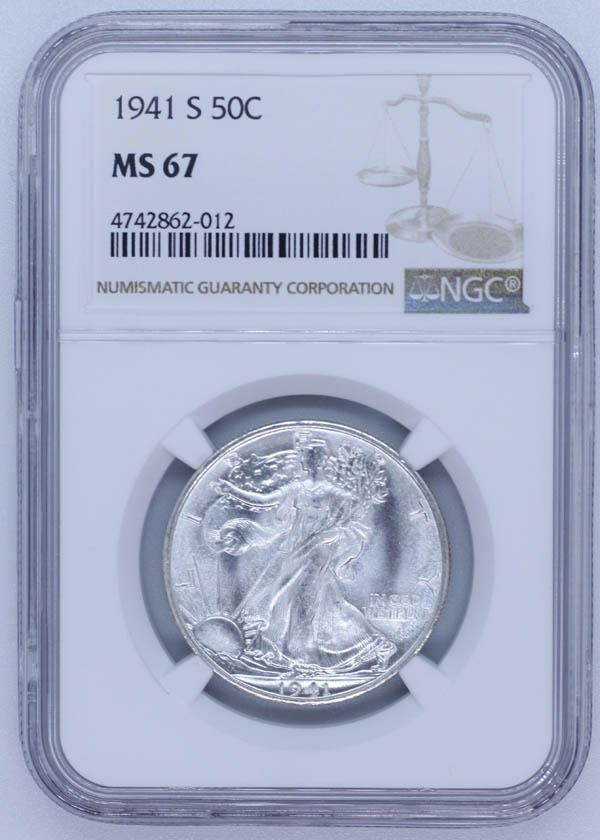 1941-S Liberty Walking Half Dollar. NGC graded MS-67. An incredible gem.