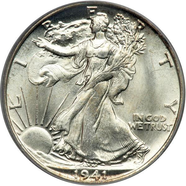 1941-S Liberty Walking Half Dollar. PCGS graded MS-66. A sharply struck gem and creamy white in appearance. In our opinion a Premium Quality coin for the grade. Pop 362; 4 in 66+, 6 in 67 (PCGS # 6613) .