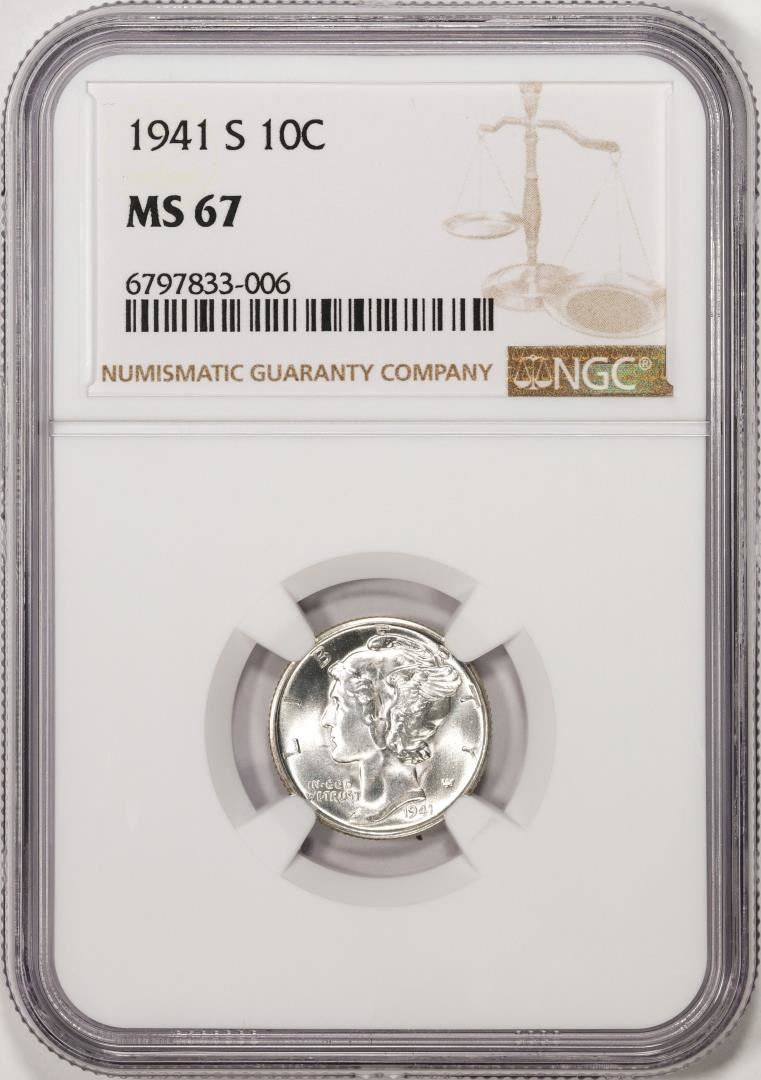 One 1941-S Mercury Dime Coin NGC MS67. NGC Certified.