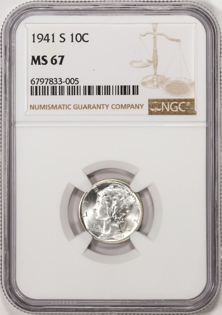 One 1941-S Mercury Dime Coin NGC MS67. NGC Certified.
