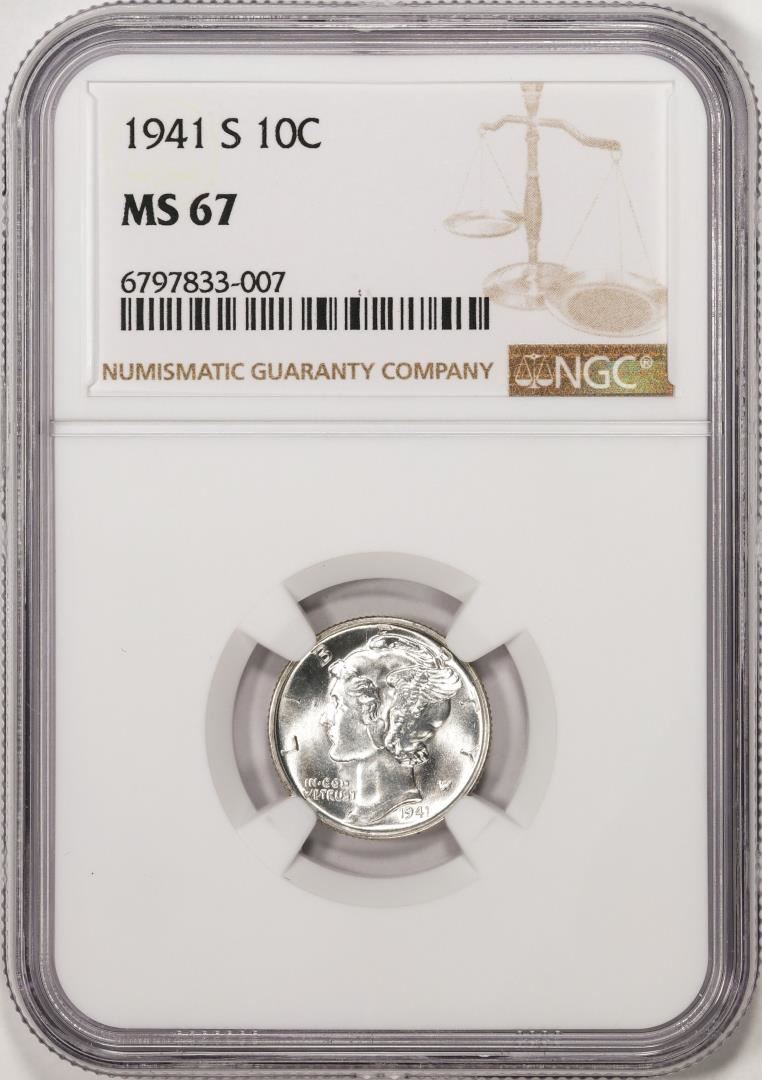 One 1941-S Mercury Dime Coin NGC MS67. NGC Certified.