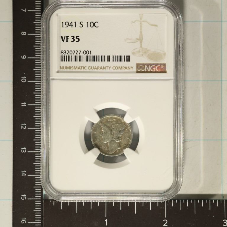 1941-S SILVER MERCURY DIME NGC VERY FINE 35
