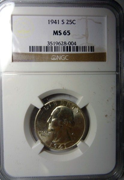 1941-S WASHINGTON QUARTER NGC MS65 GEM